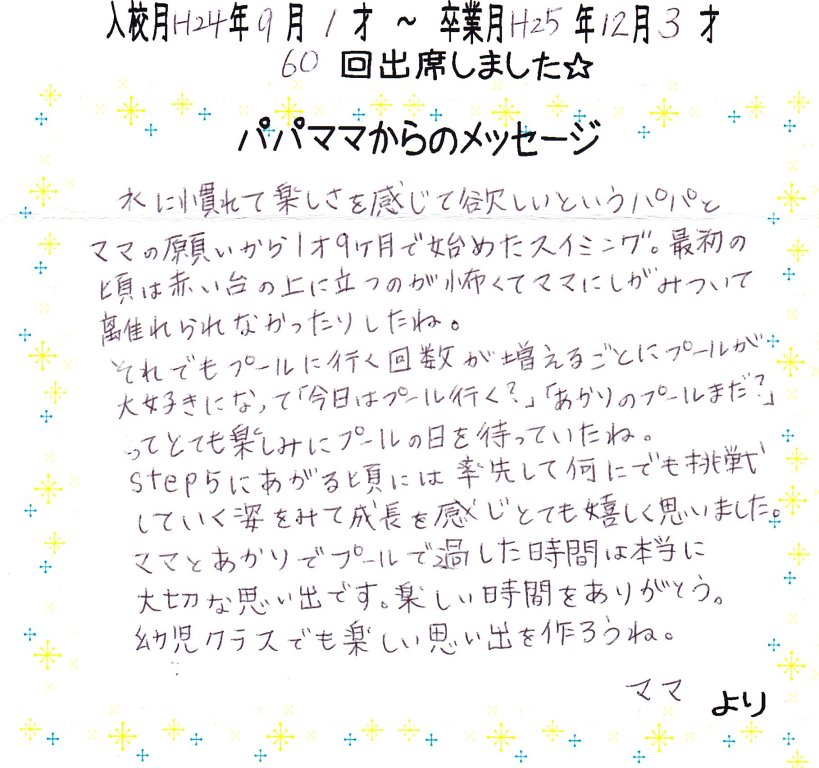 【ベビークラス卒業メッセージ】NO.15 あかりちゃん