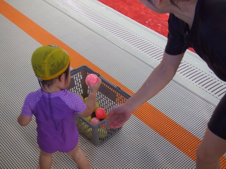 それ〜〜と2色のボールを投げて、ベビーちゃんが取った色に分かれました。