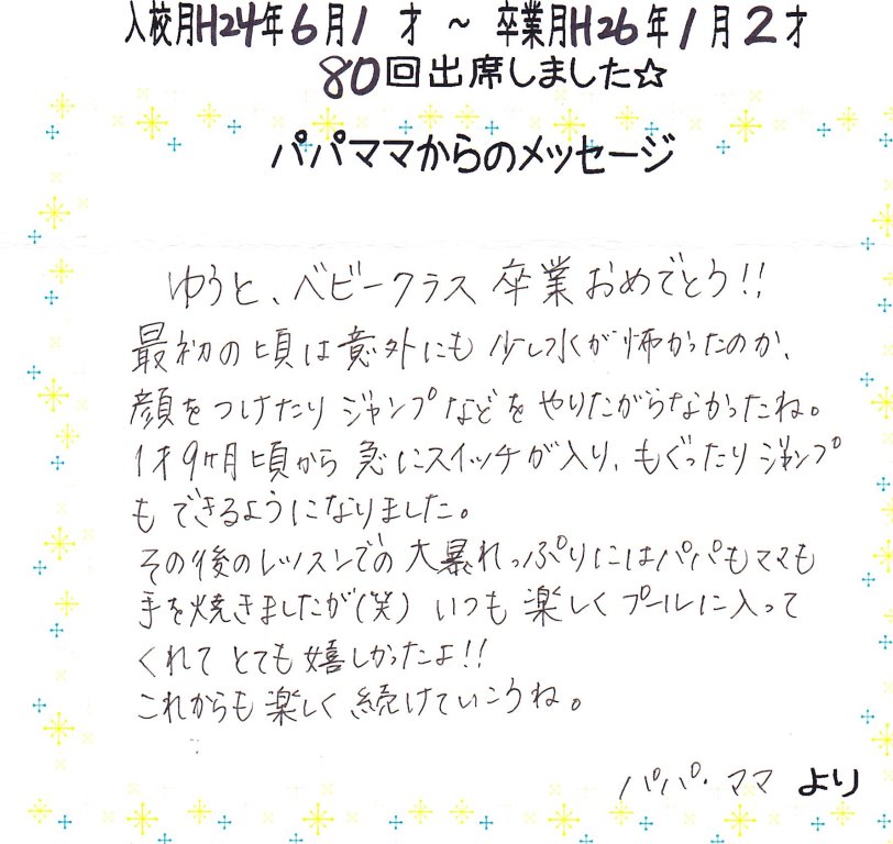 【ベビークラス卒業メッセージ】NO.18 ゆうとくん
