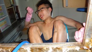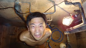 水着にゴム手、そして長靴。今日の志茂先生、とっても