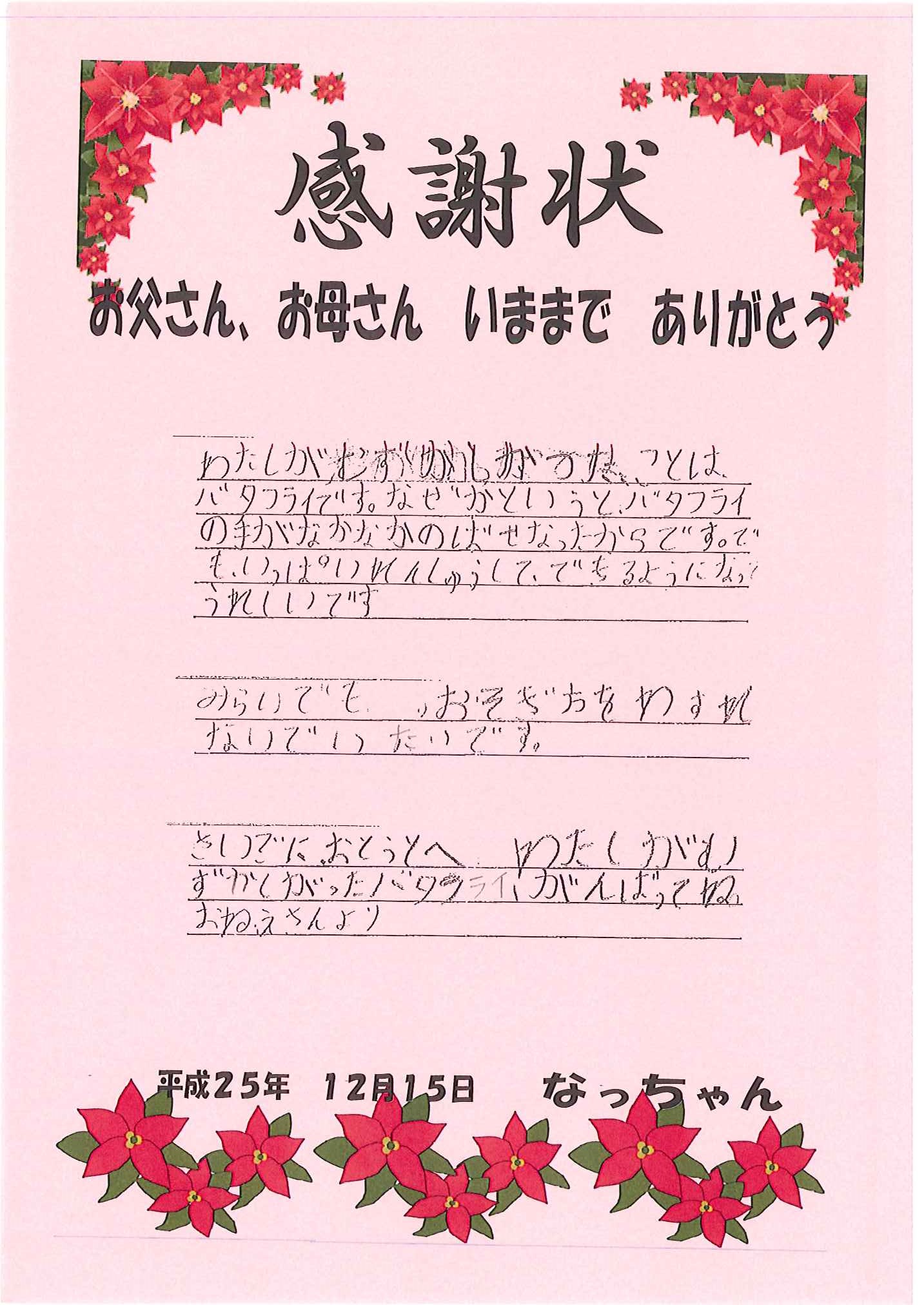 なっちゃんの感謝状