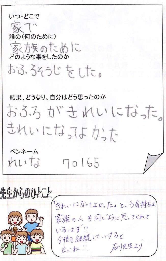 特習生が身の回りでしたちょっとしたボランティア活動(お手伝いなど)をした際に