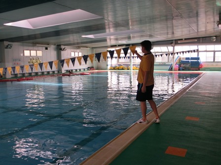 5mフラッグがピーンと張って、プールが広く感じるようになりました♪♪