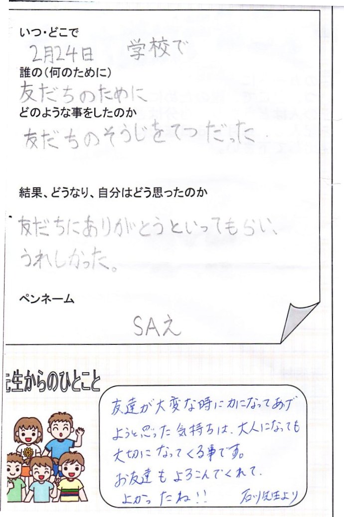 友達が感謝してくれたことで、お手伝いをした自分までうれしくなる・・・