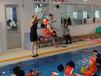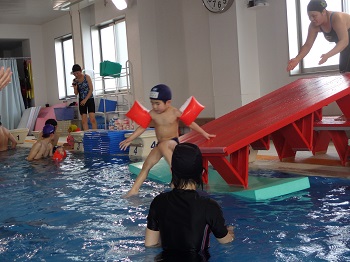 ベビー教室に通っていて、水が大好きな子は、こんな高い所から!!