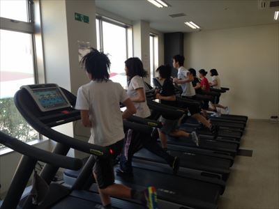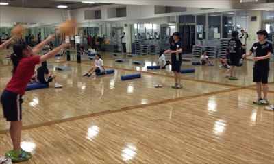 フィットネスフロア営業前を利用して、陸上トレーニングを行いました。