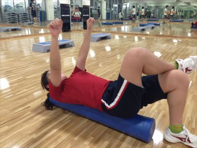 ストレッチポールを使用した体幹トレーニング。