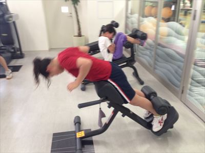腹筋・背筋のトレーニング中。