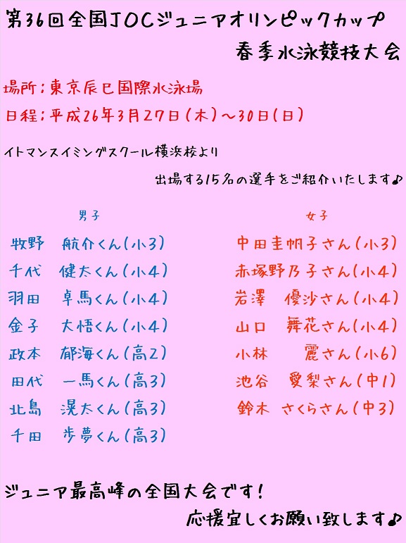 【選手クラス】全国JO春季大会出場選手のご紹介♪