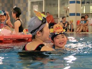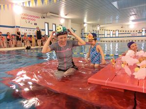 ベビーより頑張る保護者の方々の姿を見て、プール遊びの楽しさは大人も子供も一緒だというのがよくわかります。