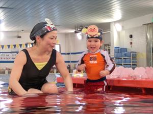 進級をしたばかりの時は、ママと離れるのも嫌がっていたベビー達も、体操・シャワー・水慣れ遊びも、ママが先に見本を見せてあげると、真似をして一生懸命体を動かしてくれるようになりました。