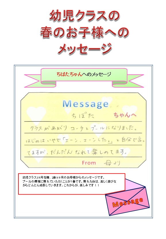 幼児クラス お子様へのメッセージ★第4弾 ちぼた★