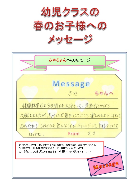 幼児クラス お子様へのメッセージ★第5弾 さやちゃん★