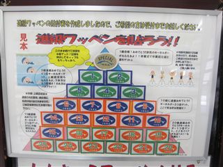 進級ワッペンを貼れる紙がフロントに置いてあるので、