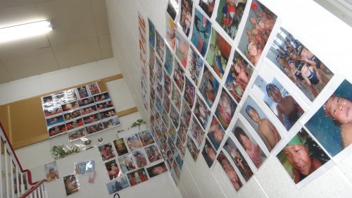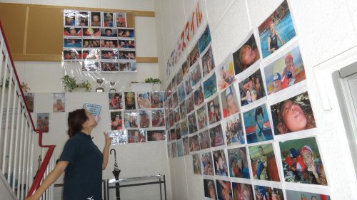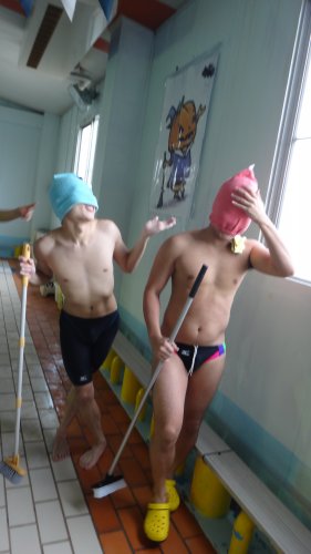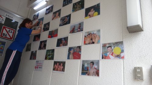 プールの中にも大きな絵を2つ貼ったので記念撮影…