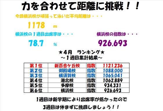 特習クラス授業内イベント 永く泳ぐ 1週目の結果及び総合結果報告
