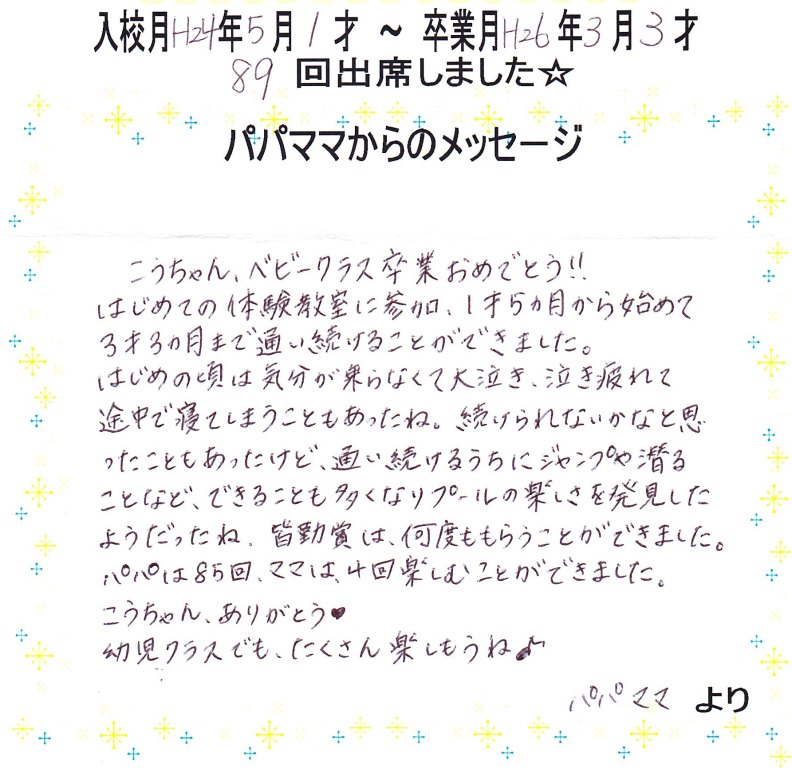 【ベビークラス卒業メッセージ】NO.22 こうきくん