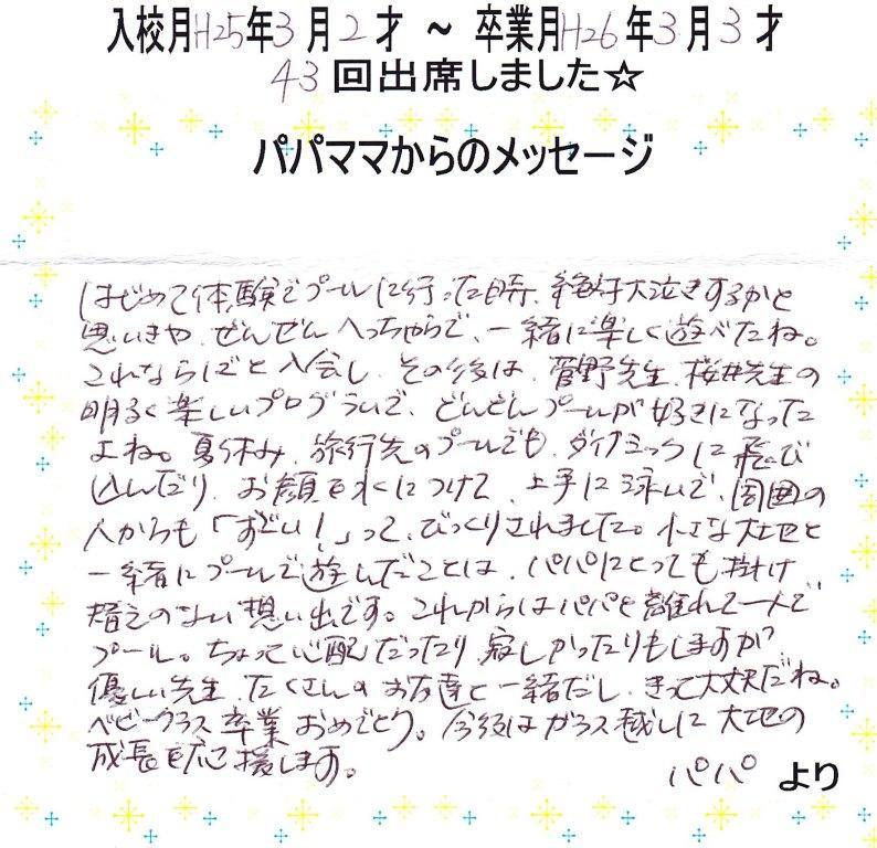 【ベビークラス卒業メッセージ】NO.23 だいちくん