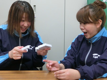 「どっちにブロック入ってるでしょうかー?」とクイズ出し合ったり・・・