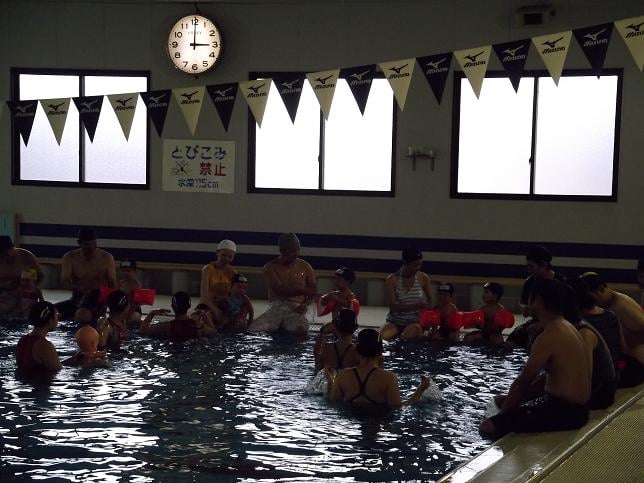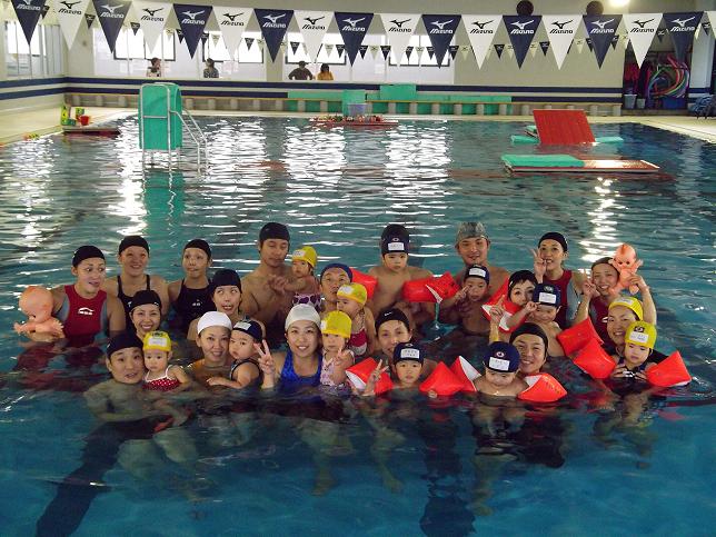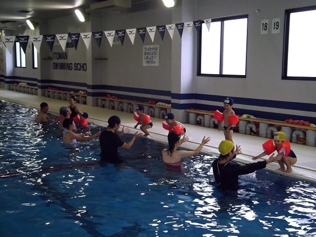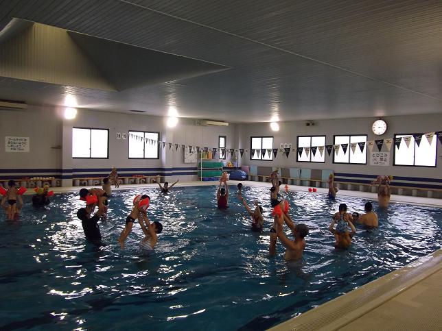 今回は、パズルやボールをプールに浮かし、パズルはフロアーに貼り、ボールはかごの中に入れるゲームを行いました。