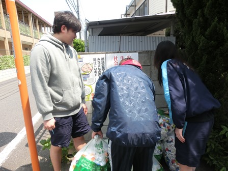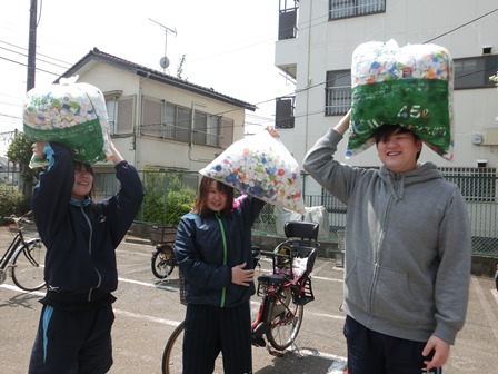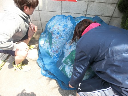 みんなで協力して、エコキャップを回収場所まで運びました!!