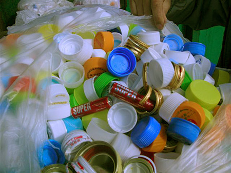 回収ボックスの中にプルタブ、アルミ製のキャップ等が入っています。