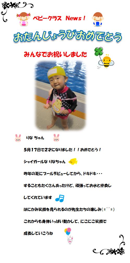 ♪ベビークラス News♪ お誕生日お祝いしました!‘りなちゃん’
