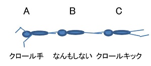Cの人は Bの人の足を持って、クロールのキックをします。