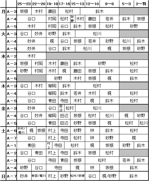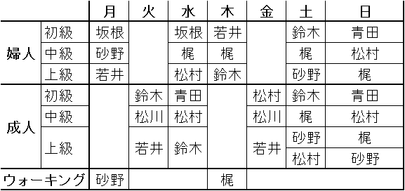 7月コーチ配置表