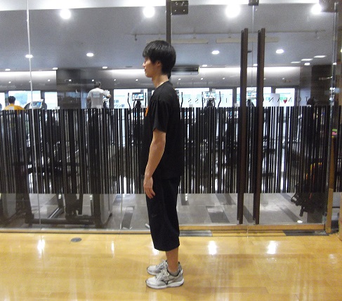 1・股関節幅に足を開いて立ちます