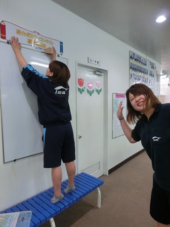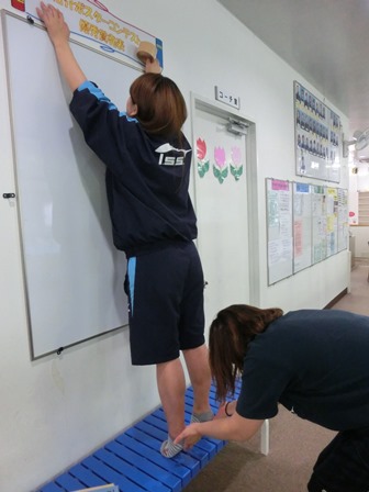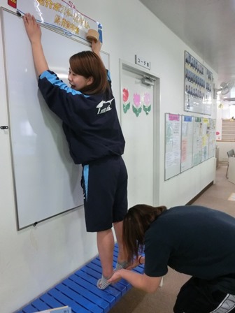 大野先生は、ちょっとだけ身長が小さいので、なかなか上まで手が届きません・・・