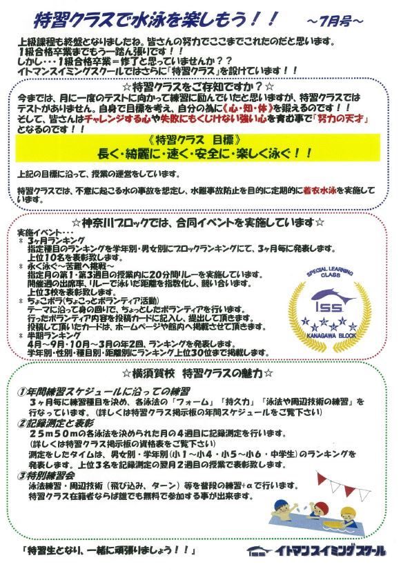特習クラスで水泳を楽しもう!!