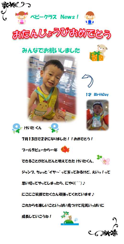 ♪ベビークラス News♪ お誕生日お祝いしました!‘けいたくん’