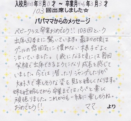 【ベビークラス卒業メッセージ】NO.25 はるまくん