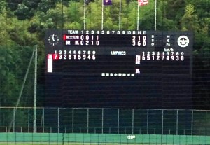 ちょっと読みにくいのですがスコアボードの高校名をご覧ください。