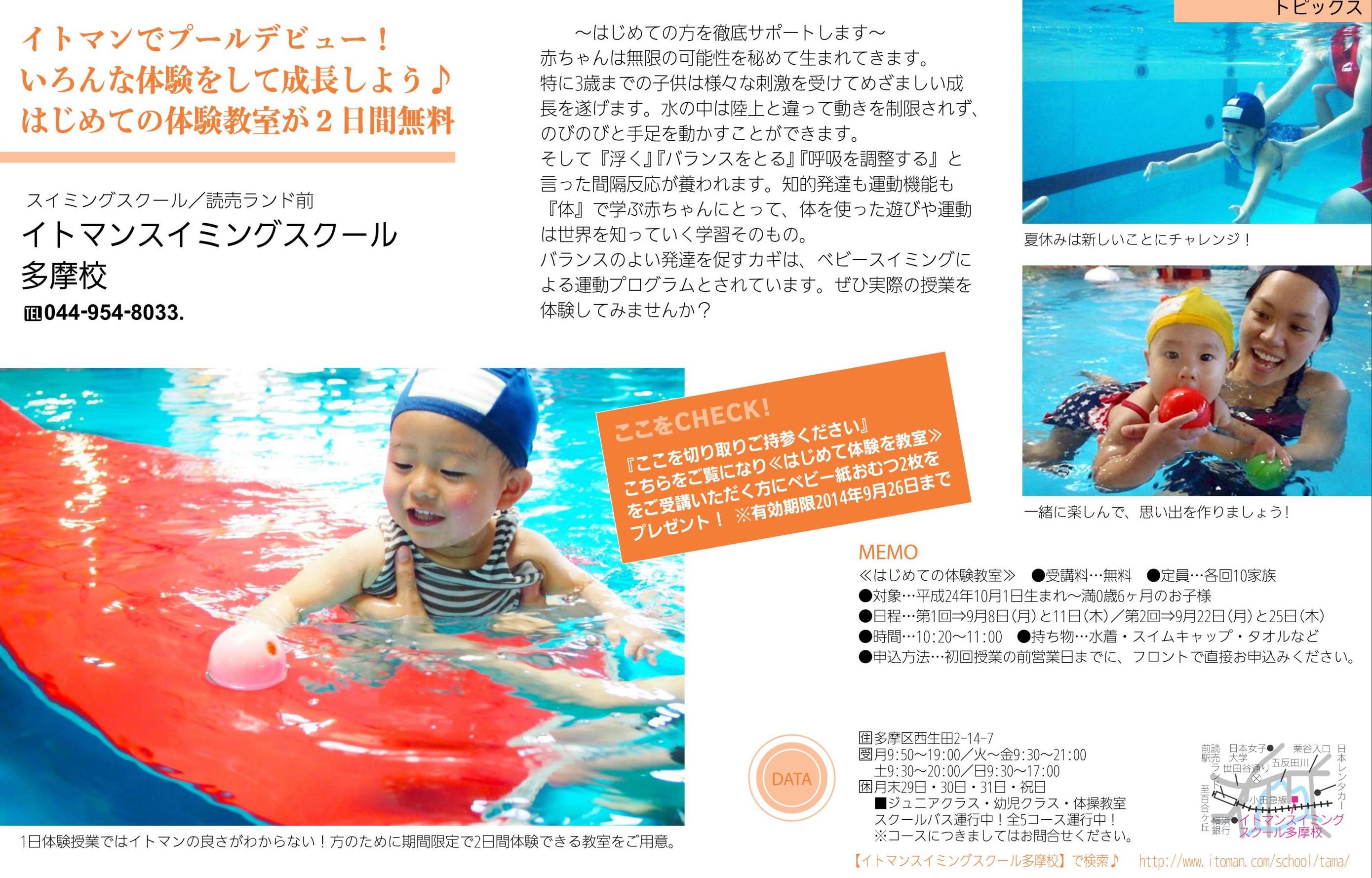 (上記をクリックすると拡大されます。オレンジ色の部分を切り取ってお持ち頂くとスイムパンツ2枚プレゼント)