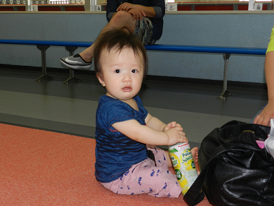 ママのかばんから物を出しまくっていた、えいすけくん。