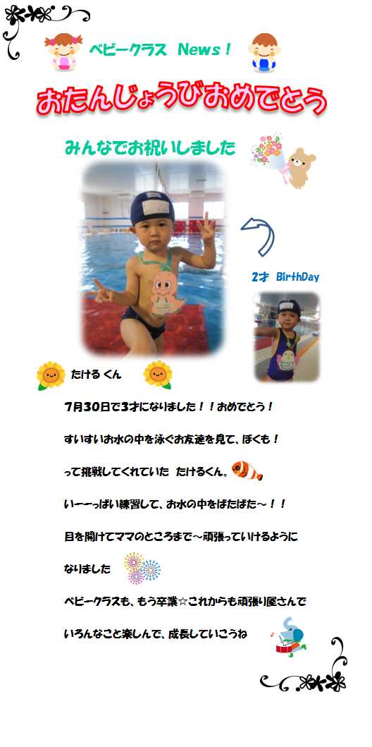 ♪ベビークラス News♪ お誕生日お祝いしました!‘たけるくん’