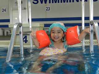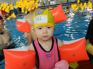 初めてのイトマンのプールだけど泣かずに頑張ってた、さきちゃん。