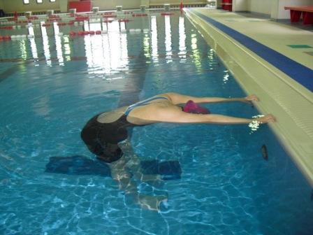 3 手を前に戻しながら、顔を水の中に戻す