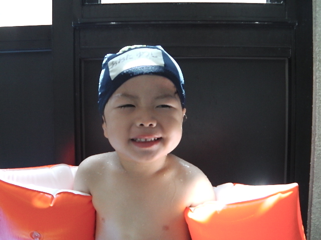 嫌がって泣いていたけど、今では笑顔でスイミングを