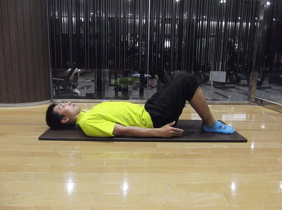 1・膝を曲げて仰向けになります