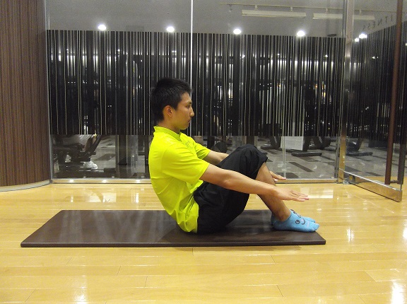 3・腹筋を使って、しっかりと起き上がっていきます