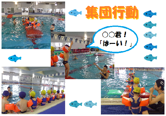 幼児クラスでは、プールの中で色々な運動を組み合わせることにより