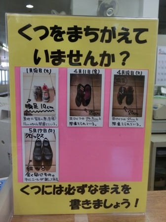 今までは、玄関に靴の履き間違え一覧を掲示しておりましたが