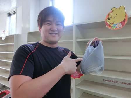 ※佐竹先生がでかいのではありません。ビニール袋が小さいんです。