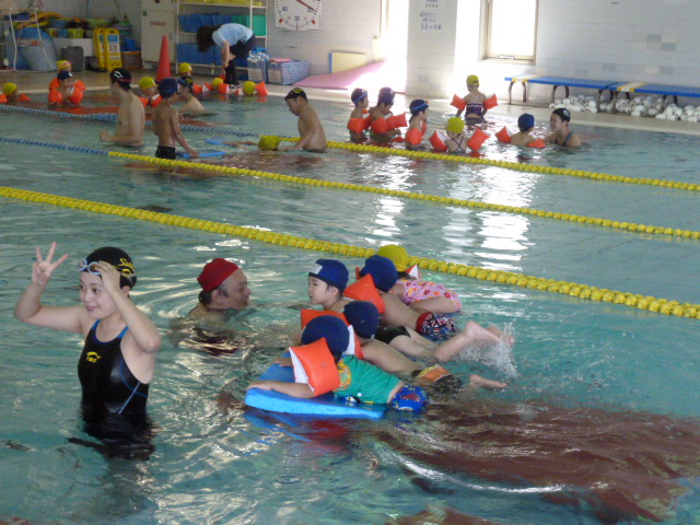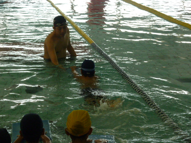 コーチと一緒にビート板でばたばた
