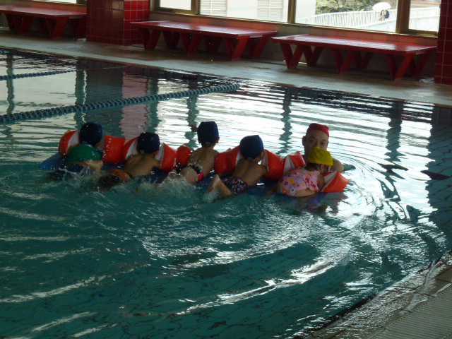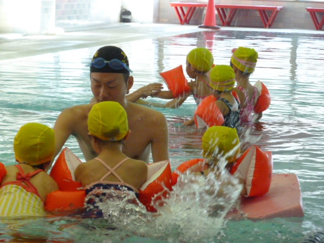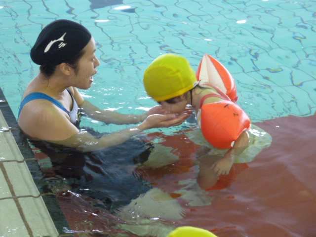 ヘルパークラスのお友達も、コーチと一緒ならお水も怖くないね!