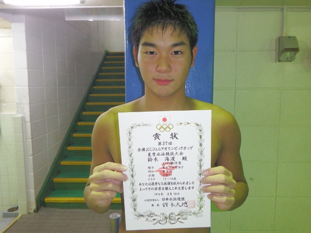 100m背泳ぎでベスト記録を更新し、5位入賞した鈴木くん