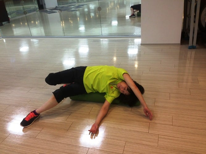 このようにストレッチポールを使って歪みの矯正と局所の筋膜をゴロゴロさせながら弛緩させます。
